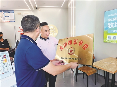 南江縣退役軍人事務(wù)部門工作人員為擁軍商戶掛牌。吳 濤攝
