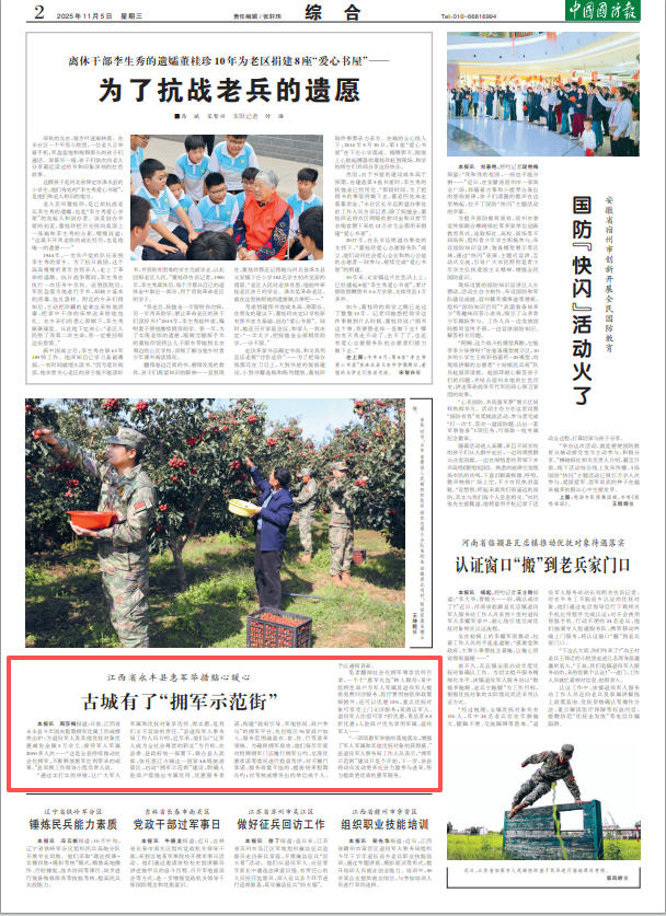 “一項項惠軍舉措的落地落實,增強了軍人軍屬和其他優(yōu)撫對象的獲得感。”縣退役軍人事務局工作人員表示,“擁軍示范街”建設只是個開始,下一步,該縣將動員發(fā)動更多社會力量參與進來,努力提供更優(yōu)質(zhì)的惠軍服務。