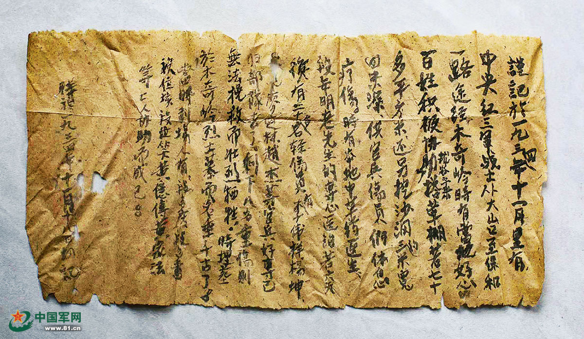 紅軍戰(zhàn)士李偉祥記錄的菜嶺村村民無私幫助紅軍經(jīng)過的字據(jù)。