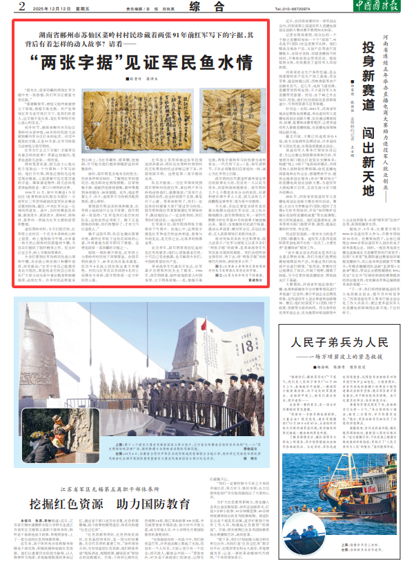 面對突如其來的關(guān)注和贊譽(yù),段元法表示:“紅軍與曾祖父以及鄉(xiāng)親們‘兩張字據(jù)’的故事,是革命戰(zhàn)爭年代軍民魚水情深的縮影。我們會把傳家寶保存好、傳下去,將‘兩張字據(jù)’的故事代代相傳,講給更多人聽?!?/p>