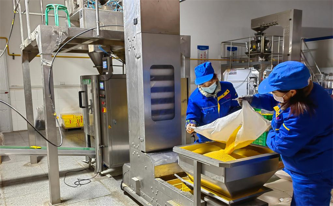 延川縣森海農(nóng)產(chǎn)品經(jīng)銷有限責(zé)任公司內(nèi)的小米加工生產(chǎn)線。新華社記者孫正好 攝