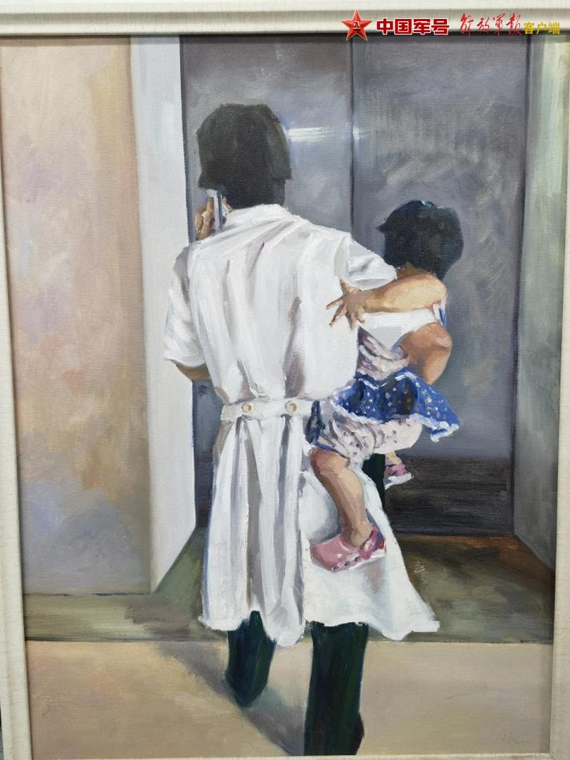 在李慧靈辦公室墻上,一副患者繪制的油畫(huà)記錄下這位軍醫(yī)的忙碌狀態(tài):身穿白大褂,左手接著電話,右臂被小女孩牢牢拽住。