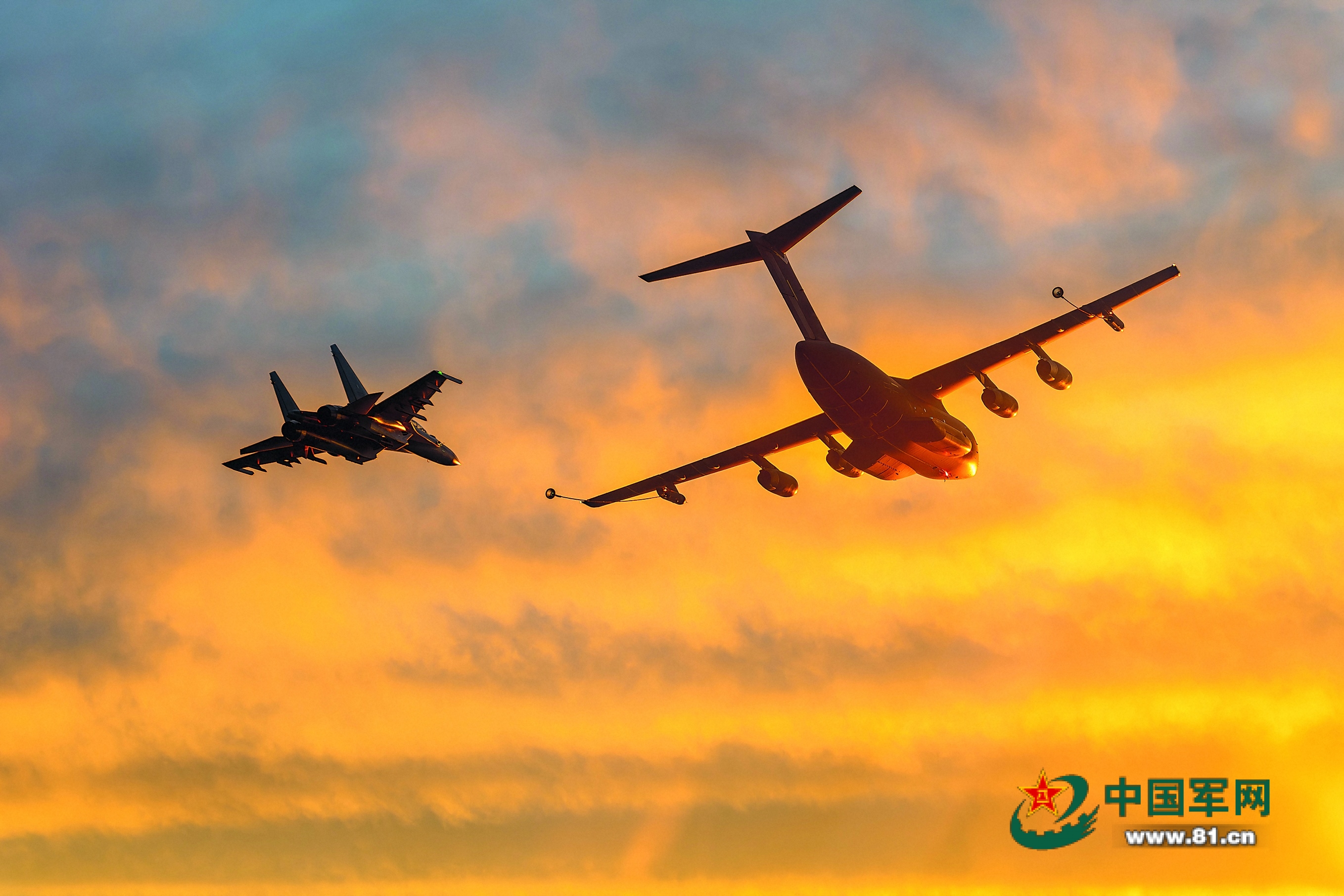 日落時分,戰(zhàn)機在夕陽映照下仿佛披上一層金色戰(zhàn)甲。編隊再次進行空中加油,隨后展開區(qū)域封控訓練……