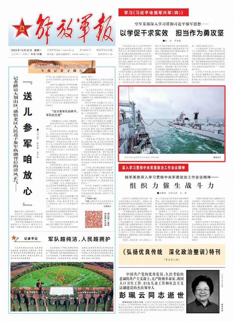 來源:中國軍網(wǎng)-解放軍報(bào) 作者:周遠(yuǎn)志 責(zé)任編輯:郭妍菲 發(fā)布:2025-12-22 09:09:41