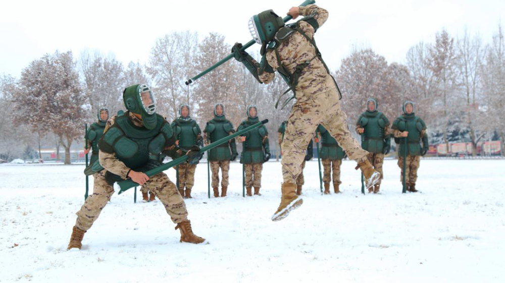 武警第一機(jī)動(dòng)總隊(duì)某支隊(duì)堅(jiān)持緊貼實(shí)戰(zhàn)要求,設(shè)置擒敵、刺殺等多個(gè)課目,砥礪官兵血性膽氣,強(qiáng)化官兵近戰(zhàn)硬功。(齊彥杰、李傳龍)