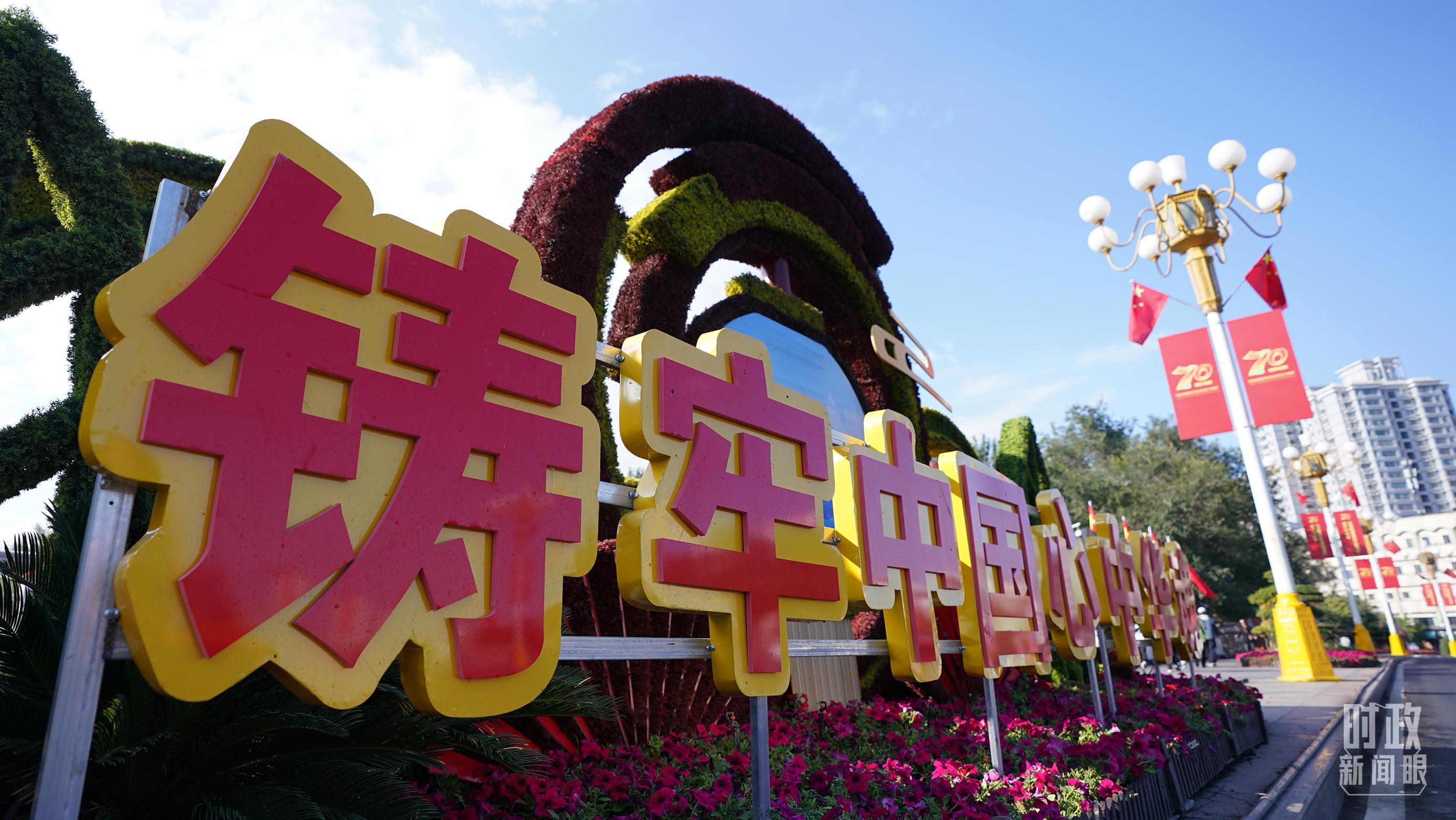 △烏魯木齊街頭的花壇。(總臺(tái)記者李晉拍攝)