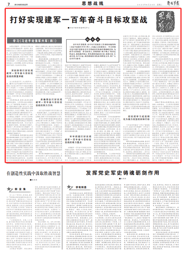 深刻體悟打好實(shí)現(xiàn)建軍一百年奮斗目標(biāo)攻堅(jiān)戰(zhàn)的厚重承載