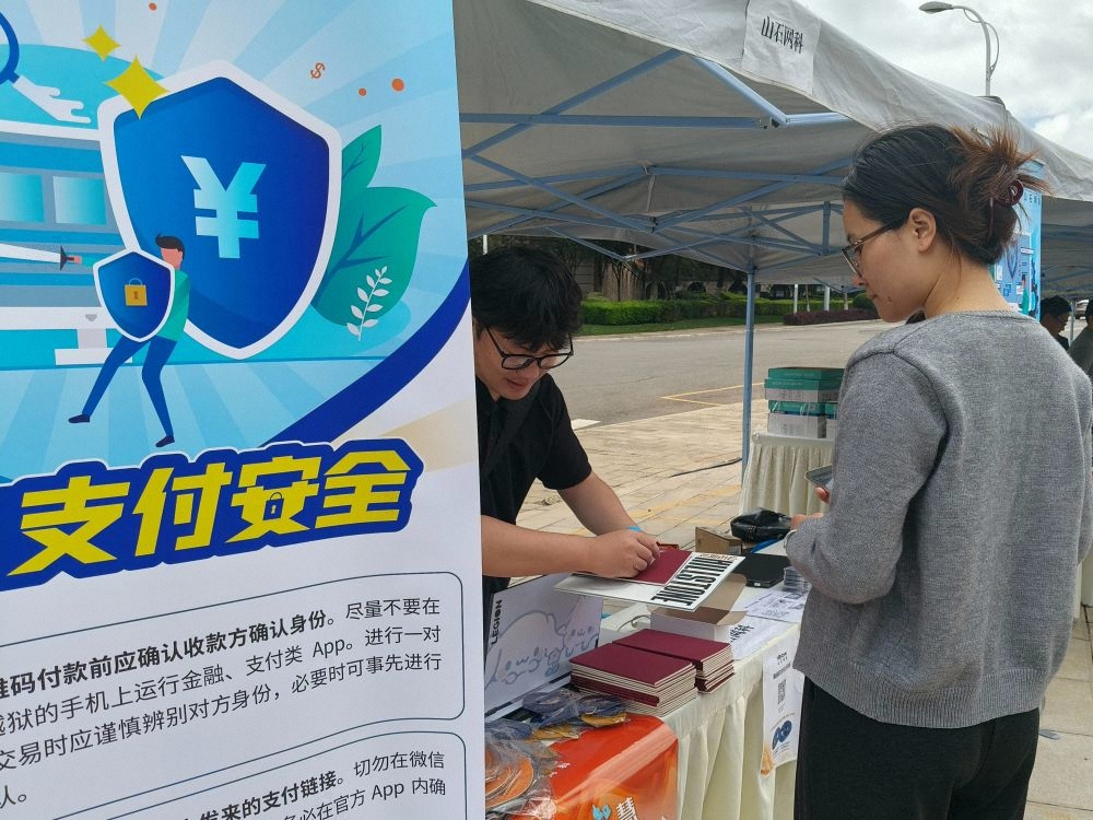 校園的露天廣場上還安排有網(wǎng)絡(luò)安全知識(shí)趣味問答活動(dòng),吸引學(xué)生參與,讓他們在輕松愉快的氛圍中鞏固了反詐知識(shí)。還有工作人員向路過的學(xué)生發(fā)放反詐宣傳手冊。