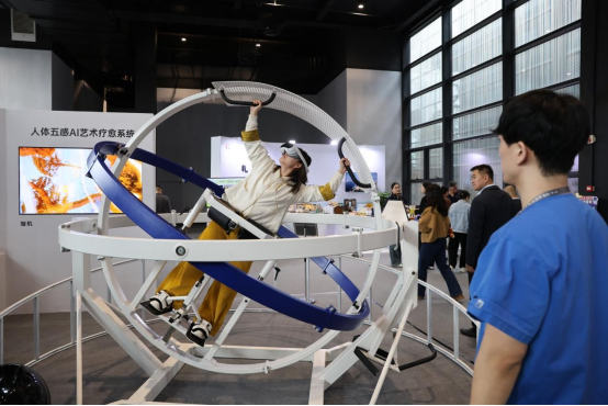 觀眾在2024年“互聯(lián)網(wǎng)之光”博覽會中體驗AI設(shè)備