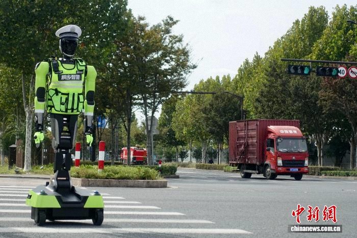 機器人“交警”在浙江桐鄉(xiāng)烏鎮(zhèn)上崗?!″X晨菲 攝