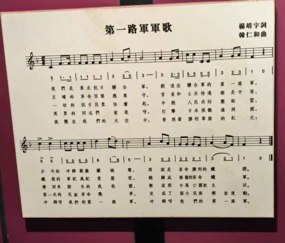 楊靖宇創(chuàng)作的《東北抗日聯(lián)軍第一路軍軍歌》,唱出了抗聯(lián)將士們永不屈服堅持戰(zhàn)斗的理由:“奪回來所失的我祖國,解放那牛馬亡國奴生活”。來源:楊靖宇烈士陵園暨東北抗日聯(lián)軍紀念館