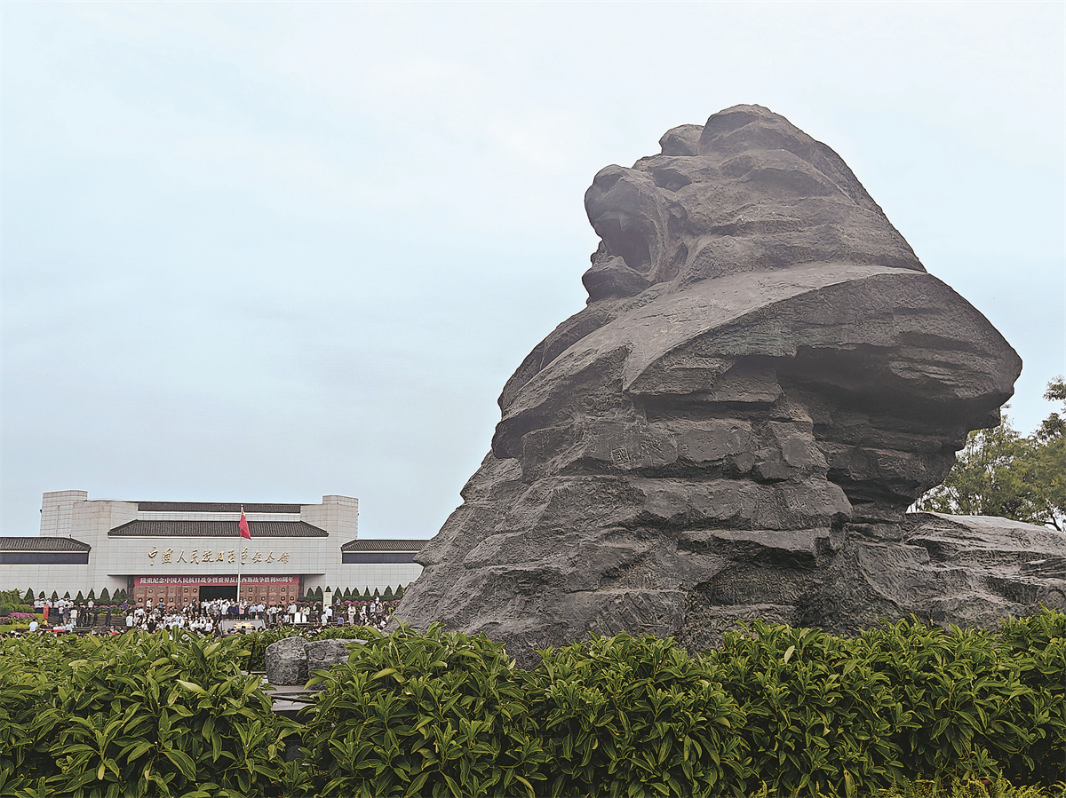 中國人民抗日戰(zhàn)爭紀念館前的“醒獅”雕塑。