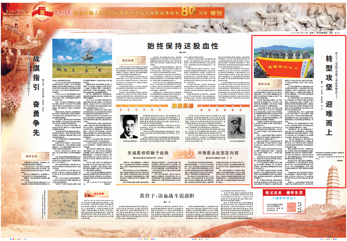 “英雄連隊(duì)的密碼,鐫刻在歷史的記憶里,更奔涌在每一茬官兵的熱血中!”該連干部說(shuō),時(shí)代在變,任務(wù)在變,“王老溝英雄連”官兵敢于突擊、英勇無(wú)畏的戰(zhàn)斗意志始終未變。