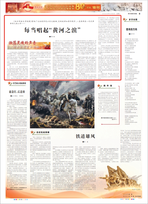 《抗日軍政大學(xué)校歌》曾給廣大抗戰(zhàn)軍民以巨大激勵(lì),它的旋律如黃河濤聲,一直澎湃在一代代革命軍人的心中——