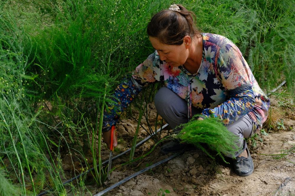 “后來我把蘆筍和羊肉一起炒,又嫩又香,全家都搶著吃。”她笑著說。這種陌生的蔬菜,正悄然成為她與村莊在鄉(xiāng)村振興路上的嶄新起點。