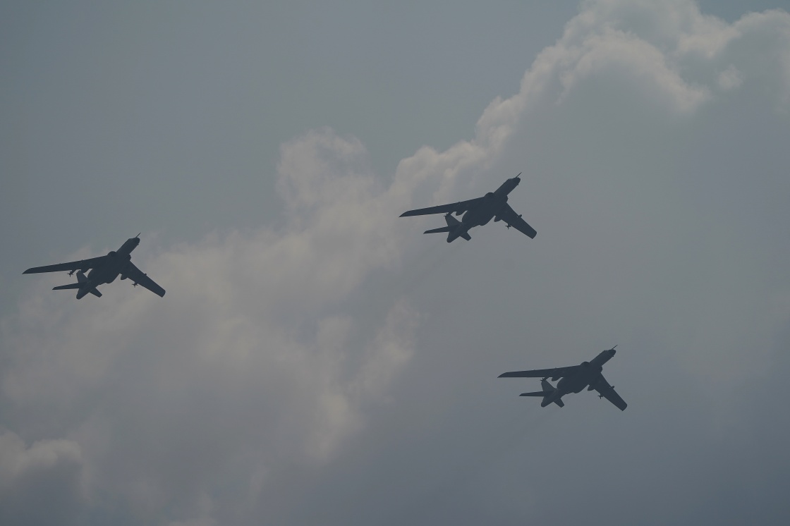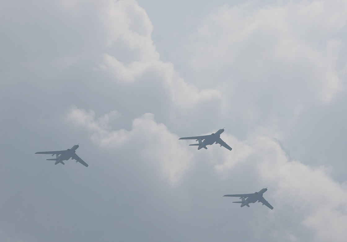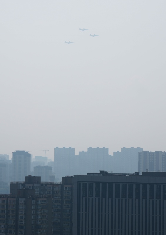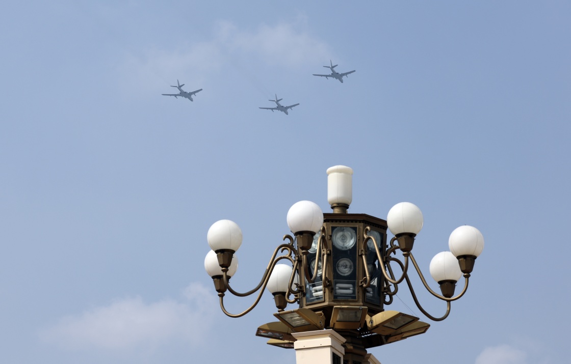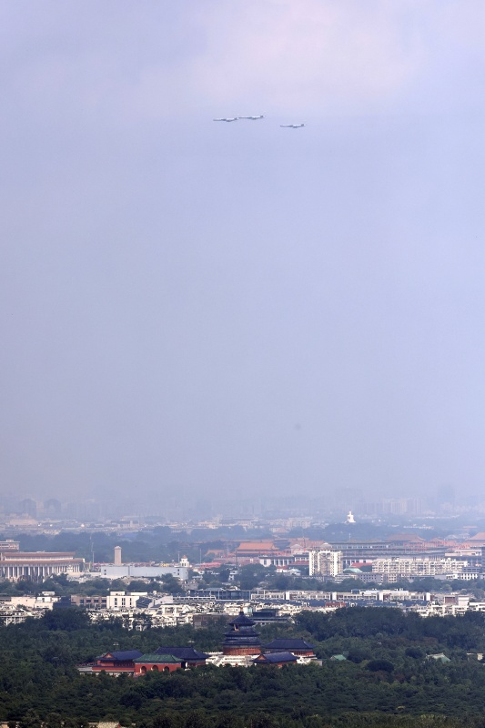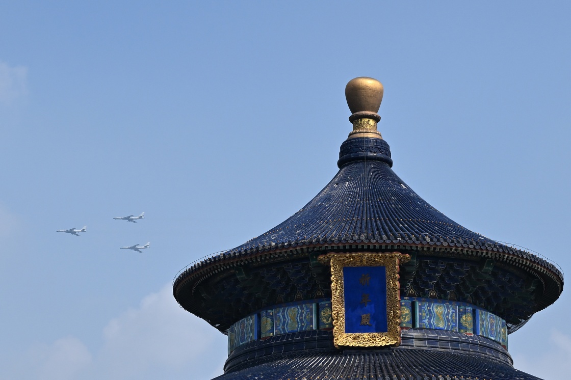 9月3日,紀(jì)念中國人民抗日戰(zhàn)爭(zhēng)暨世界反法西斯戰(zhàn)爭(zhēng)勝利80周年大會(huì)在北京隆重舉行。這是在北京天壇公園拍攝的轟炸機(jī)梯隊(duì)。