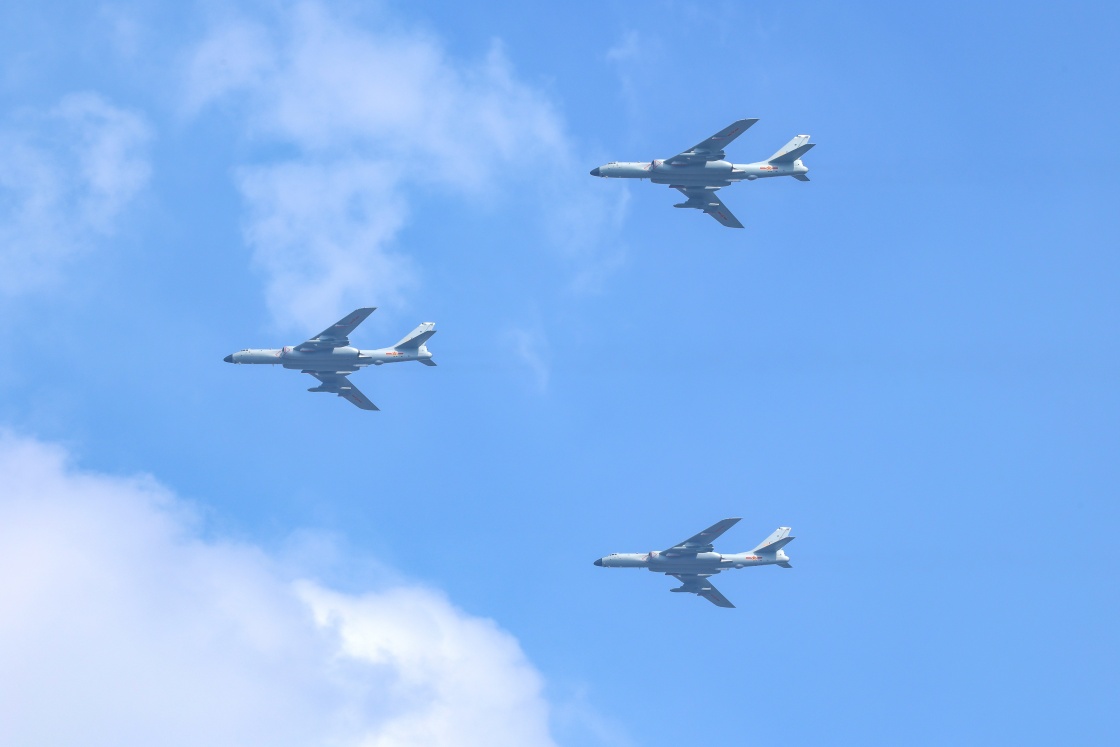 9月3日,紀(jì)念中國人民抗日戰(zhàn)爭(zhēng)暨世界反法西斯戰(zhàn)爭(zhēng)勝利80周年大會(huì)在北京隆重舉行。這是轟炸機(jī)梯隊(duì)。