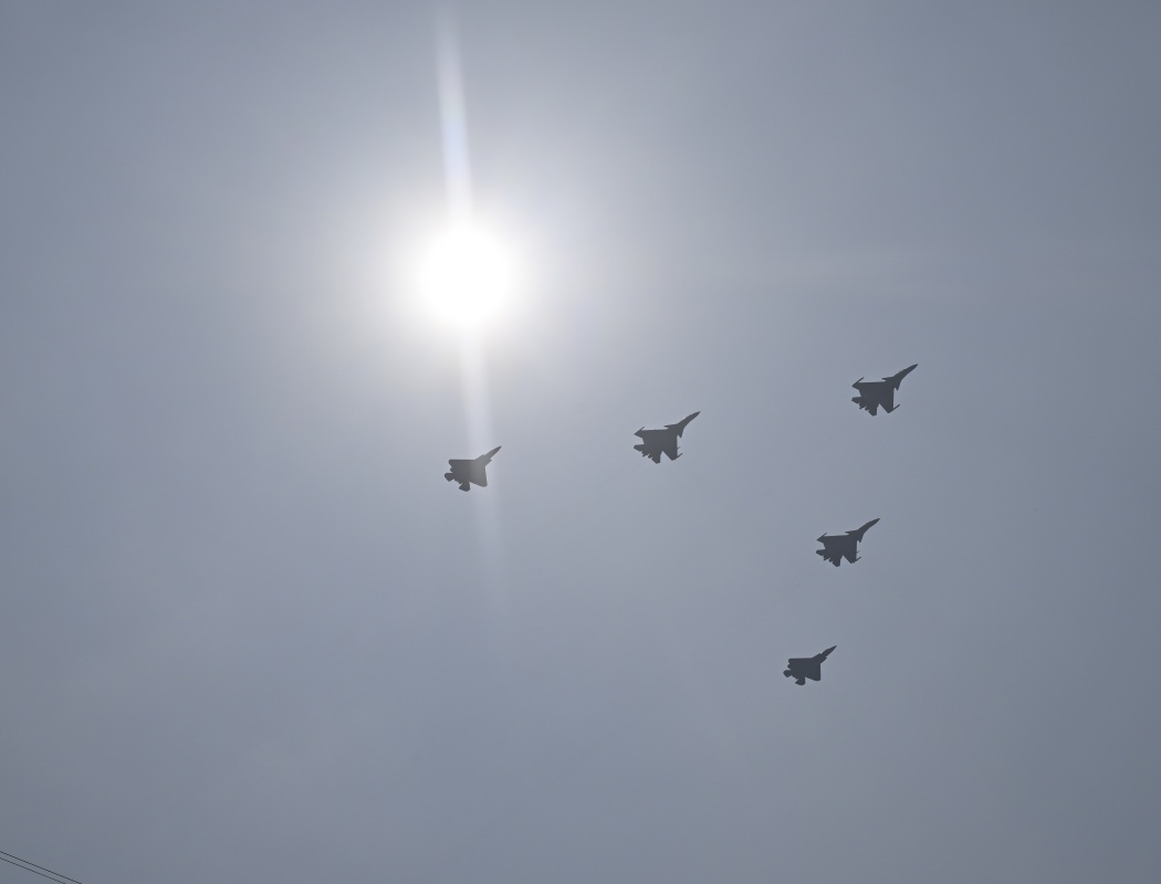 9月3日,紀念中國人民抗日戰(zhàn)爭暨世界反法西斯戰(zhàn)爭勝利80周年大會在北京隆重舉行。這是艦載機梯隊接受檢閱。