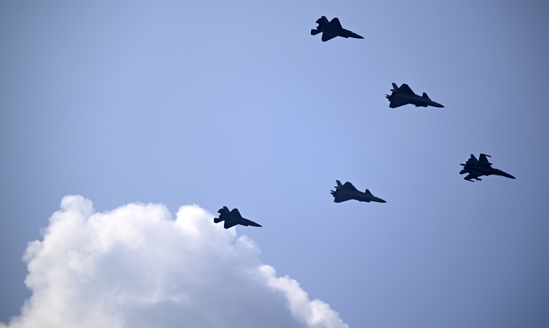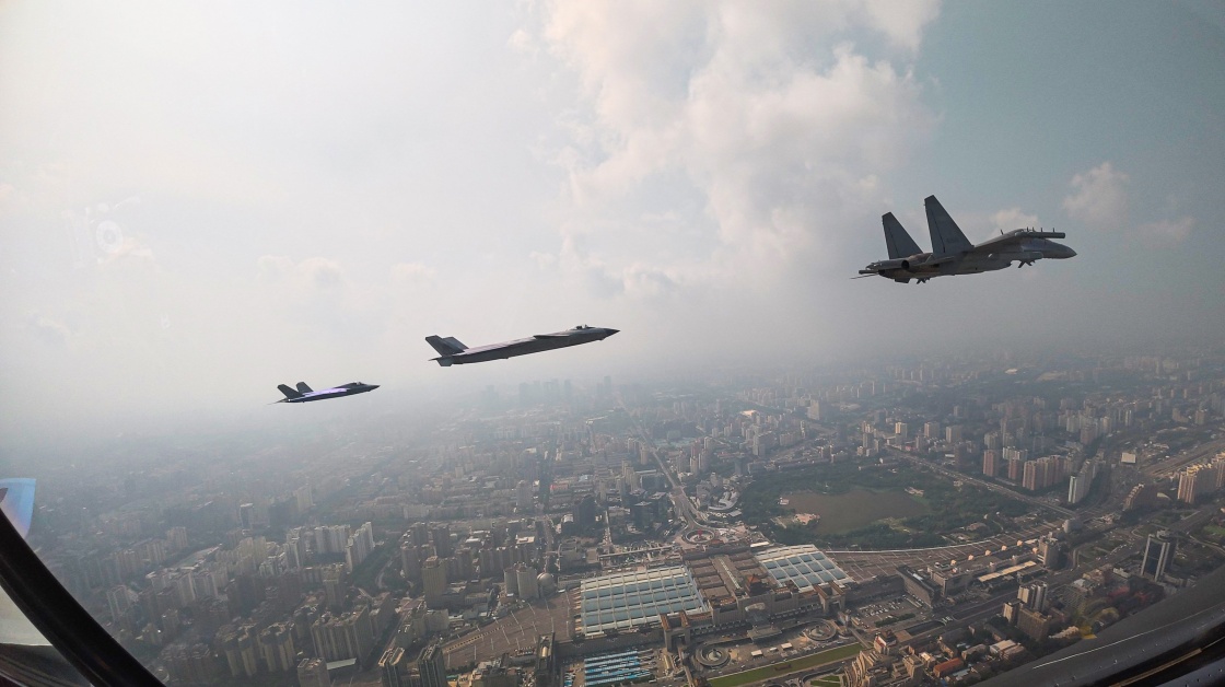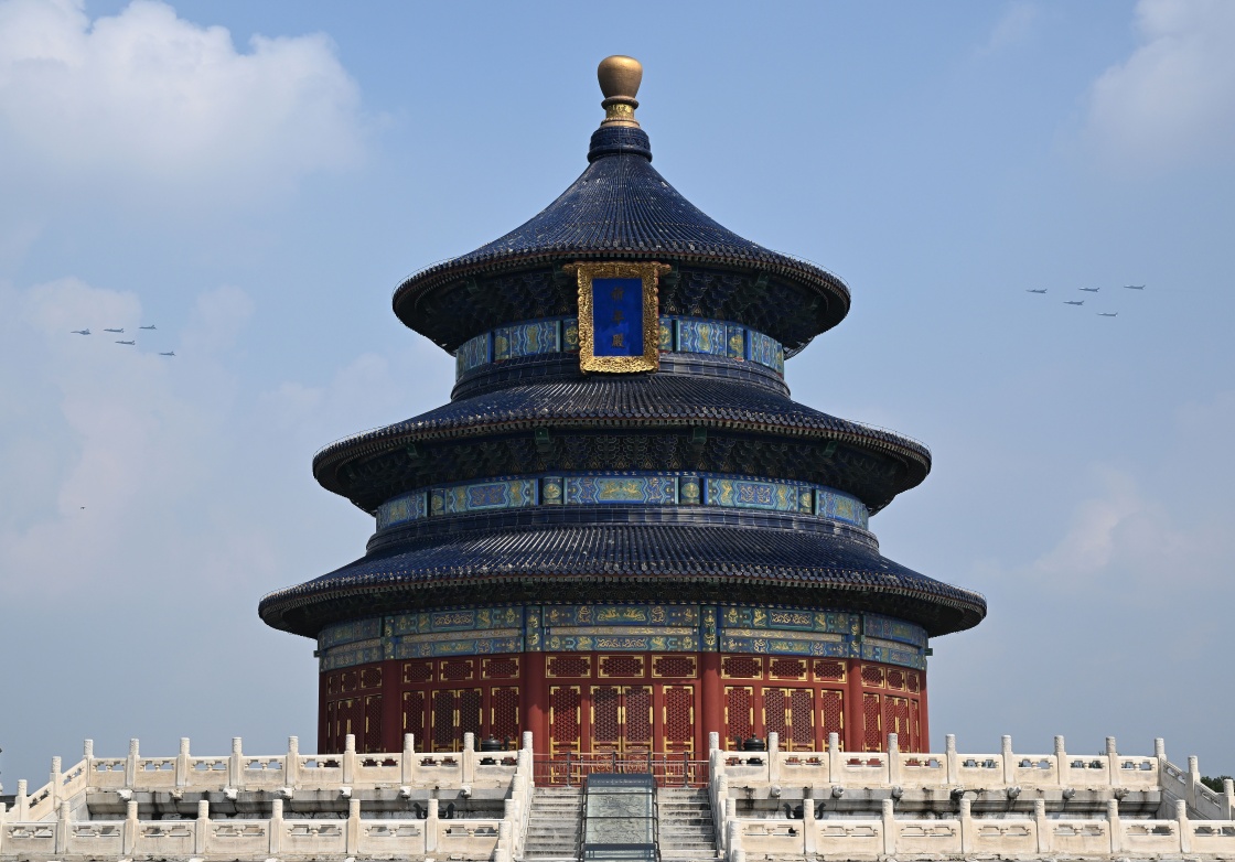 9月3日,紀(jì)念中國人民抗日戰(zhàn)爭暨世界反法西斯戰(zhàn)爭勝利80周年大會在北京隆重舉行。這是在北京天壇公園拍攝的殲擊機梯隊。