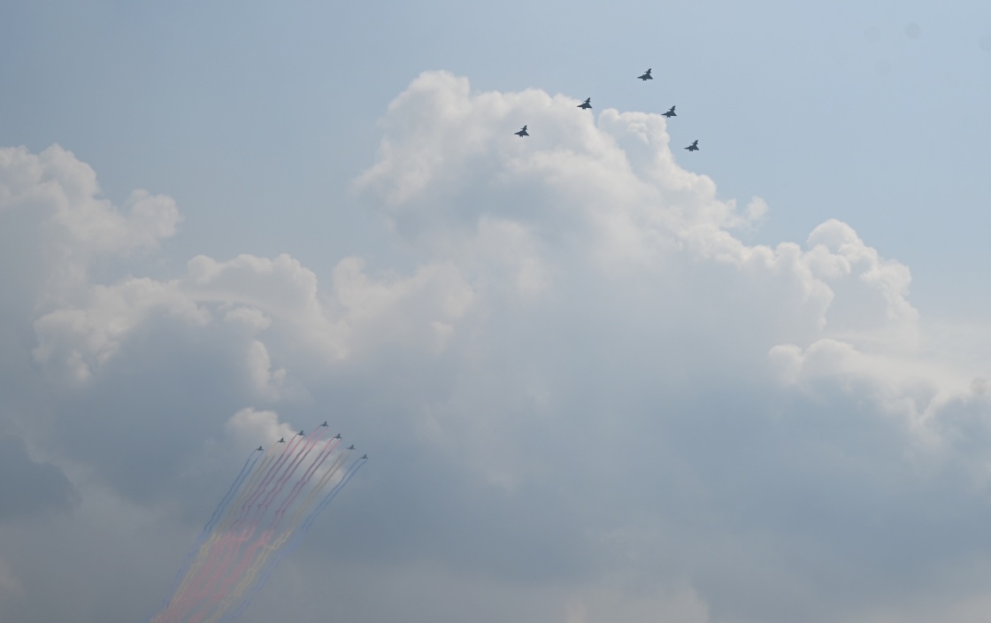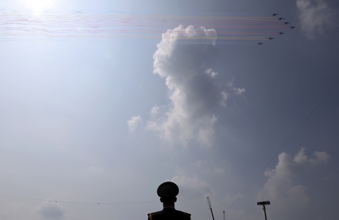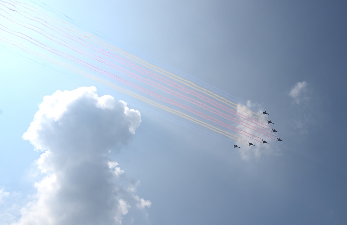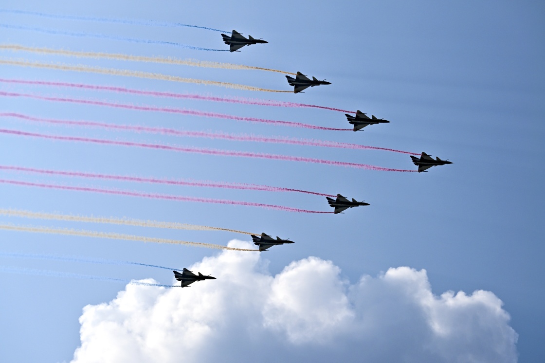 9月3日,紀念中國人民抗日戰(zhàn)爭暨世界反法西斯戰(zhàn)爭勝利80周年大會在北京隆重舉行。這是教練機梯隊。