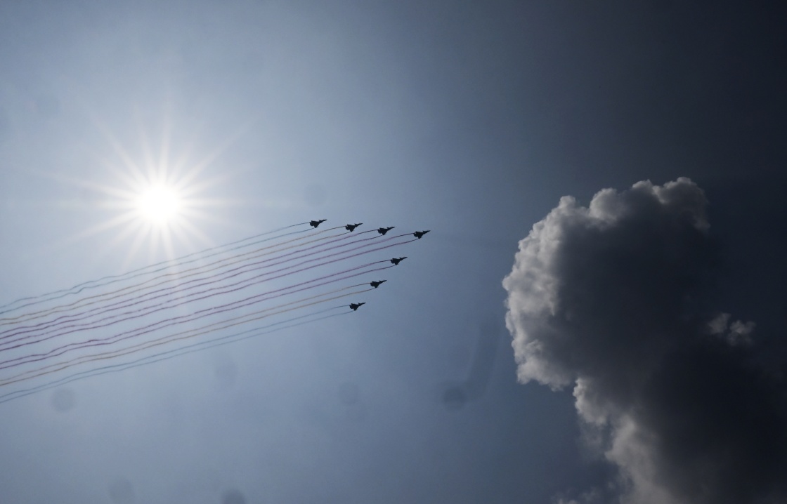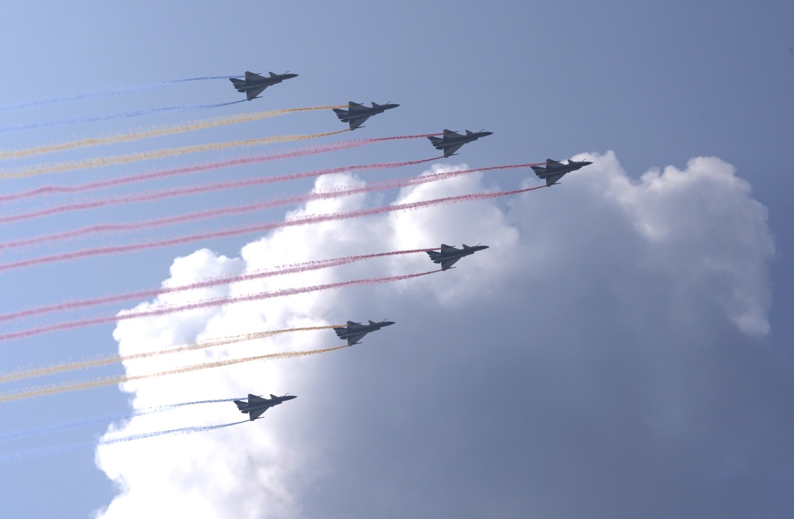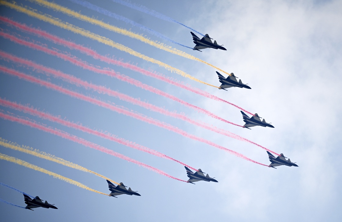 9月3日,紀念中國人民抗日戰(zhàn)爭暨世界反法西斯戰(zhàn)爭勝利80周年大會在北京隆重舉行。這是教練機梯隊接受檢閱。