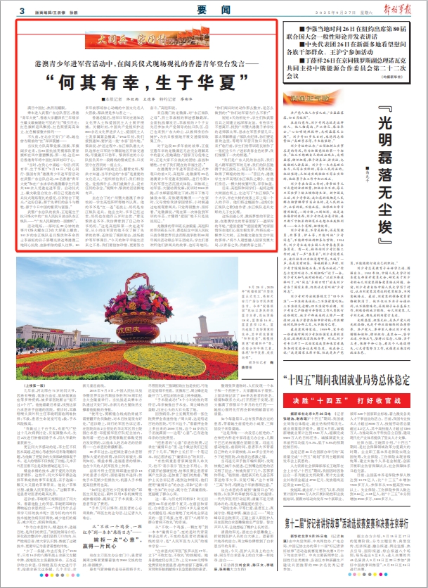 “當時,在我心中涌起一句話:何其有幸,生于華夏!”9月14日,“同心同行·強國有我”港澳青少年進軍營活動在武警廣東總隊啟動,30名香港“青年大使”和在廣東求學的港澳籍學生代表共500余人受邀走進軍營。啟動儀式上,戴文敏登臺發(fā)言,將自己受邀在閱兵儀式現(xiàn)場觀禮的感受,分享給臺下觀眾:“這份自豪,源于先輩們的奮斗與犧牲,源于今日中國的繁榮與富強?!?/p>