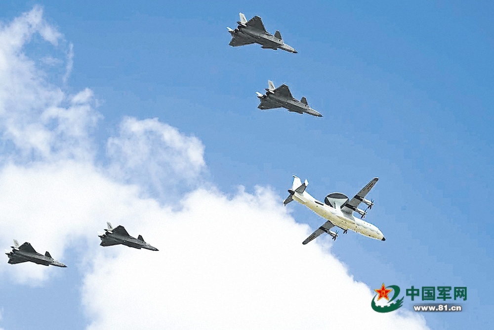 在第十一屆空軍航空開放活動和長春航空展上,空警-500與殲-20四機編隊通場。余紅春攝