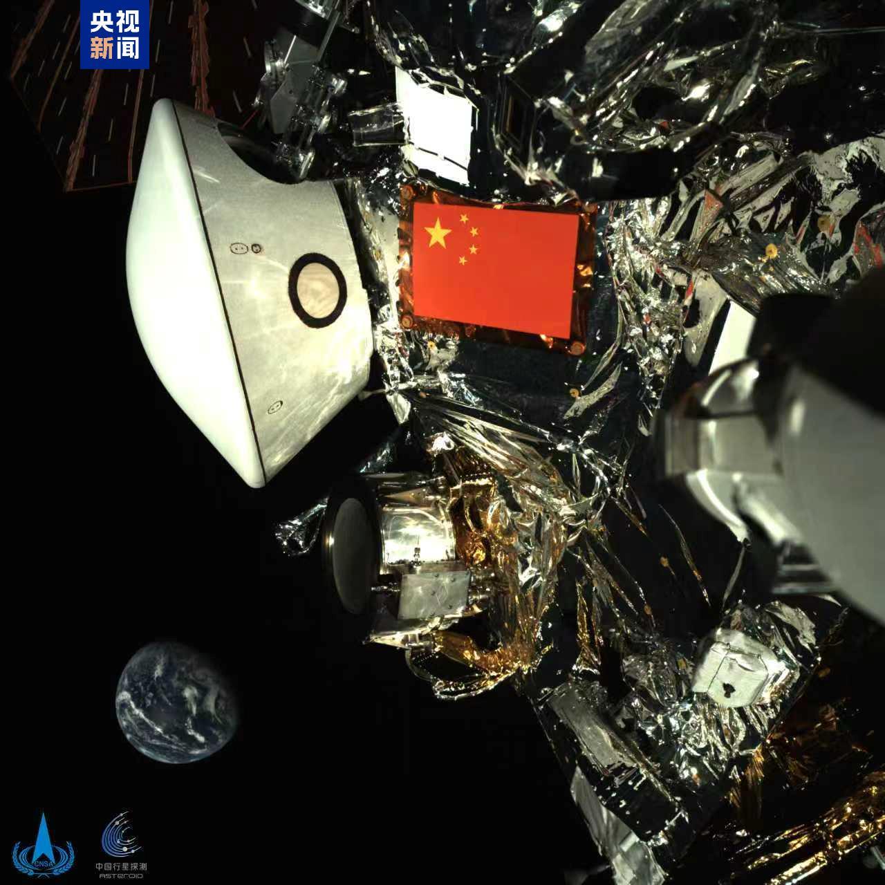 探測(cè)器上的五星紅旗與地球同框