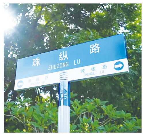 廣東省中山市五桂山區(qū)珠縱路路牌。陳景藍(lán) 攝