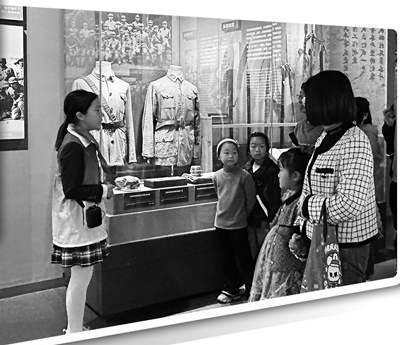 今年8月,劉世鉞(前)在石家莊警備區(qū)榮譽(yù)室為新考取軍校的學(xué)子講展品背后的故事。侯玉春 攝
