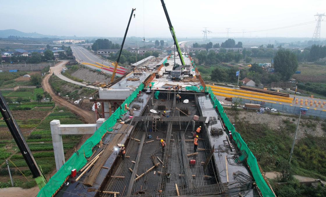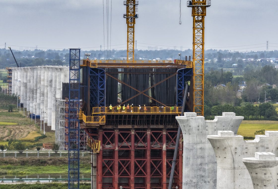10月1日,在河北省石家莊市井陘縣的石太高速改擴(kuò)建項(xiàng)目甘陶河大橋施工現(xiàn)場(chǎng),工人進(jìn)行橋梁施工作業(yè)。