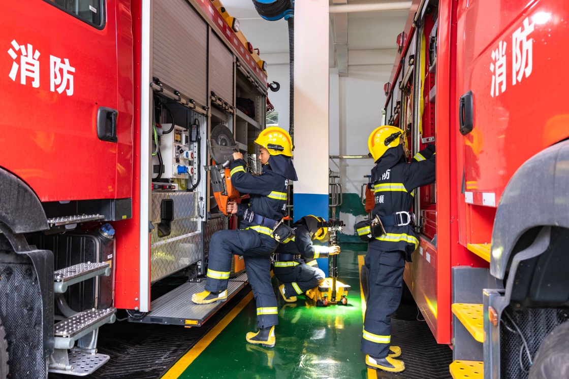 10月1日,貴州省安順經(jīng)濟(jì)技術(shù)開發(fā)區(qū)消防救援大隊(duì)消防救援人員在檢查裝備。