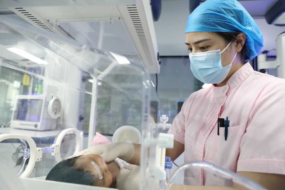 10月1日,河南省焦作市溫縣婦幼保健院護(hù)士在給新生兒做護(hù)理。