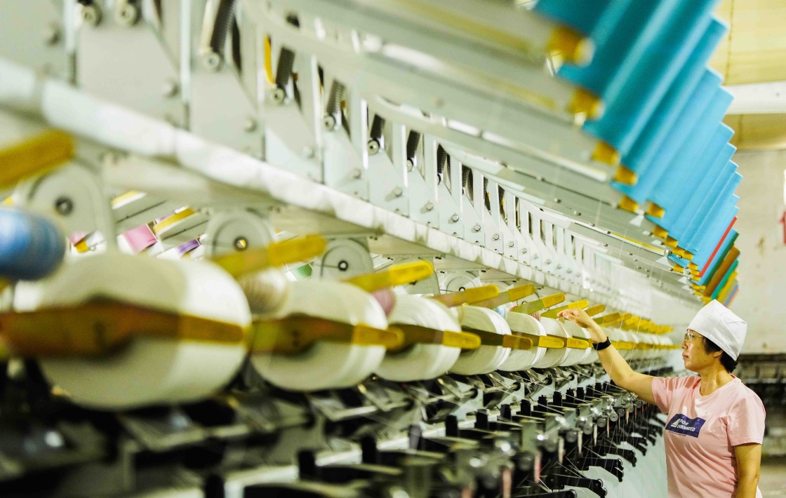 10月1日,工人在河北省遵化市高強(qiáng)化纖有限公司車間工作。