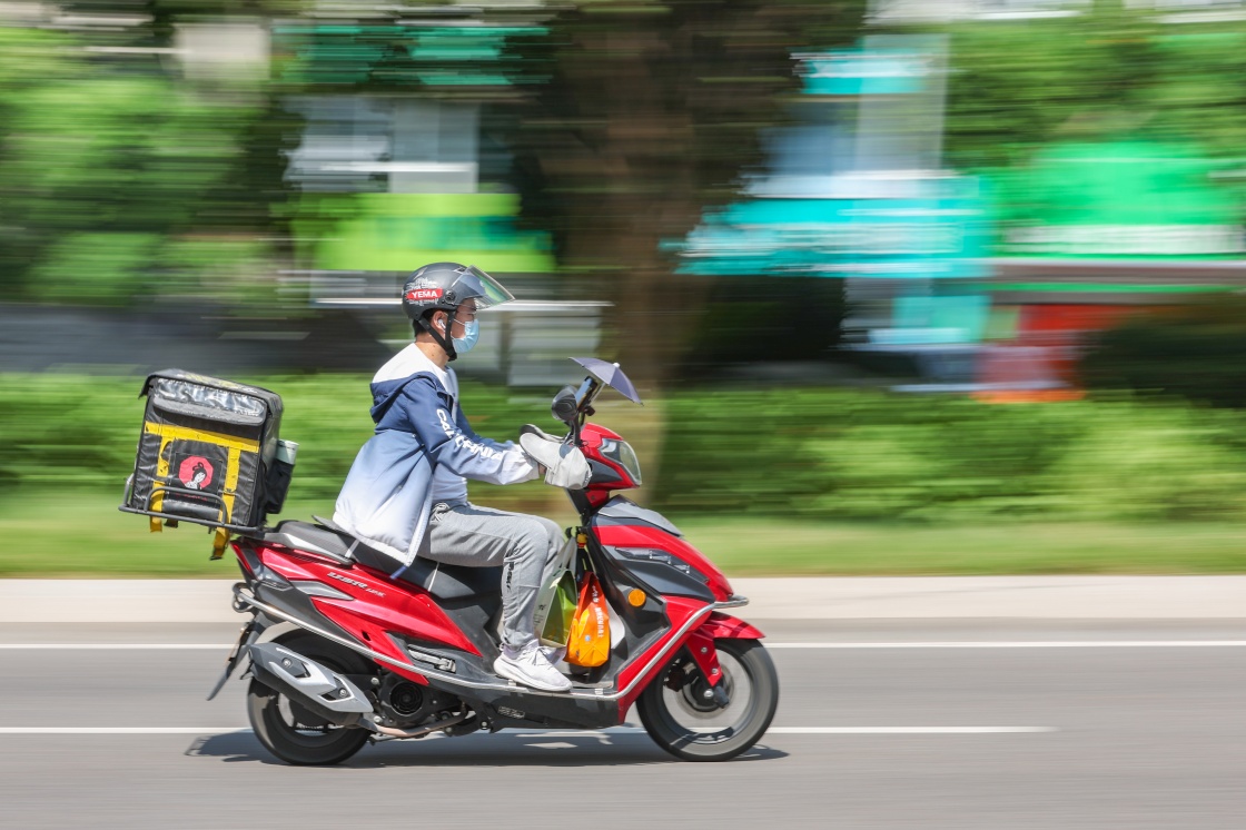 10月1日,在重慶市渝北區(qū),一名外賣小哥在辛勤工作。