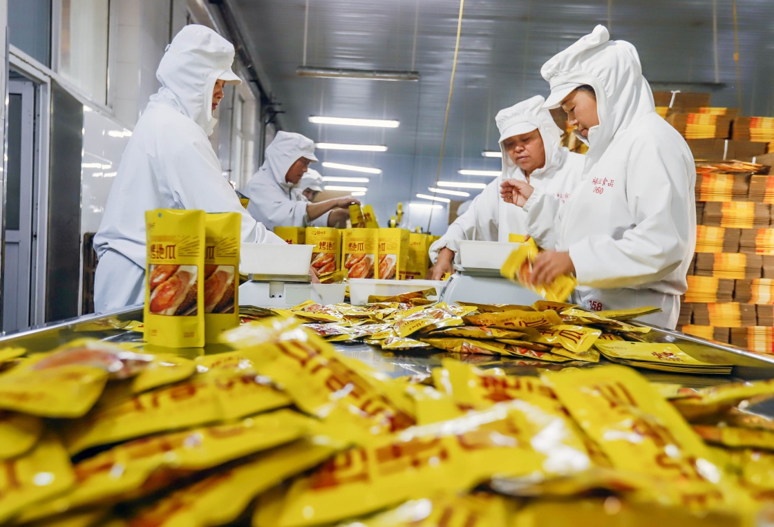 10月1日,工人在河北省遵化市蘇家洼鎮(zhèn)一家食品加工企業(yè)包裝車間工作。