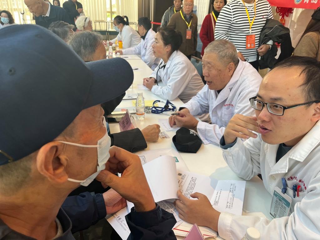 在活動現(xiàn)場,一幕幕溫馨的場景不斷上演:老人們有序地在各個科室專家答疑桌前靜靜地排隊等候;醫(yī)生們或蹲或坐,耐心地傾聽每位老人的訴求,細(xì)致解答他們的疑問……