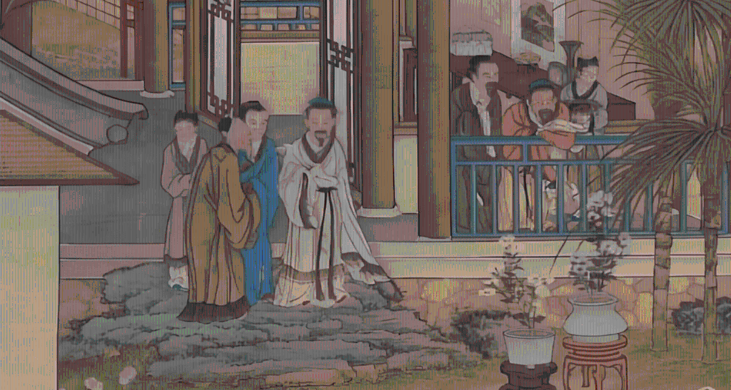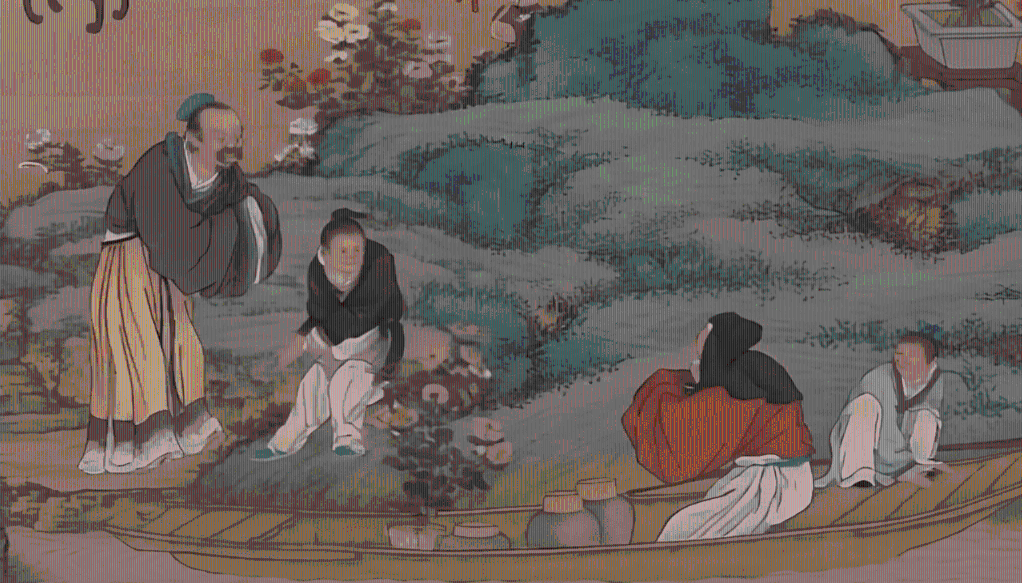 興致高昂的才子們?nèi)逑嘌嬀站?,共賞黃花,伴著酒意,吟詩(shī)賦詞,共同度過(guò)這美好的一天。