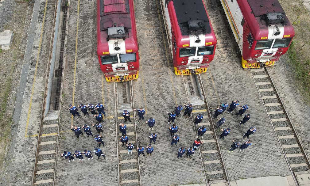 8月19日,在肯尼亞內(nèi)羅畢非洲之星鐵路運(yùn)營有限責(zé)任公司機(jī)務(wù)運(yùn)轉(zhuǎn)整備場,中肯兩國鐵路工作者在機(jī)車前站列并組成“3000”字樣,以紀(jì)念蒙內(nèi)鐵路實(shí)現(xiàn)安全運(yùn)營3000天(無人機(jī)照片)。新華社記者 楊光 攝