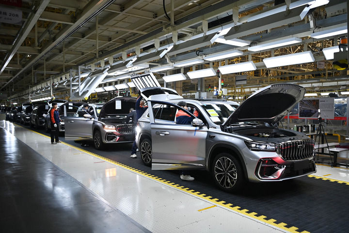 來到浙江吉利控股集團設在西安的整車生產(chǎn)基地,基于強大的數(shù)字平臺和智能化設備,這里可實現(xiàn)24小時不間斷“黑燈生產(chǎn)”,不同設備、機器人之間自主協(xié)調運作、靈活響應,沖壓、焊接、噴涂自動化率均達到100%。