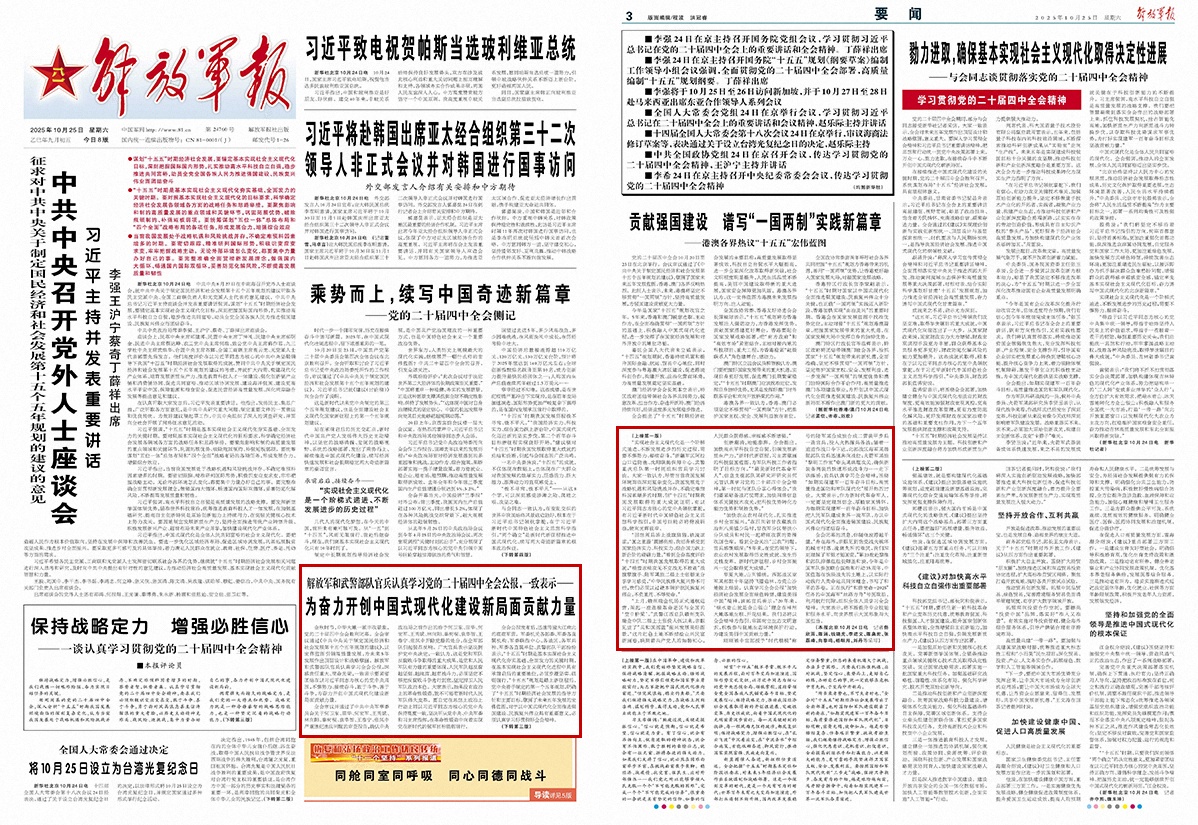 (解放軍報北京10月24日電 記者佟欣雨、陳涵、錢曉虎、李建文、陳典宏、張磊峰、向黎鳴、楊明月、劉丹等采寫)