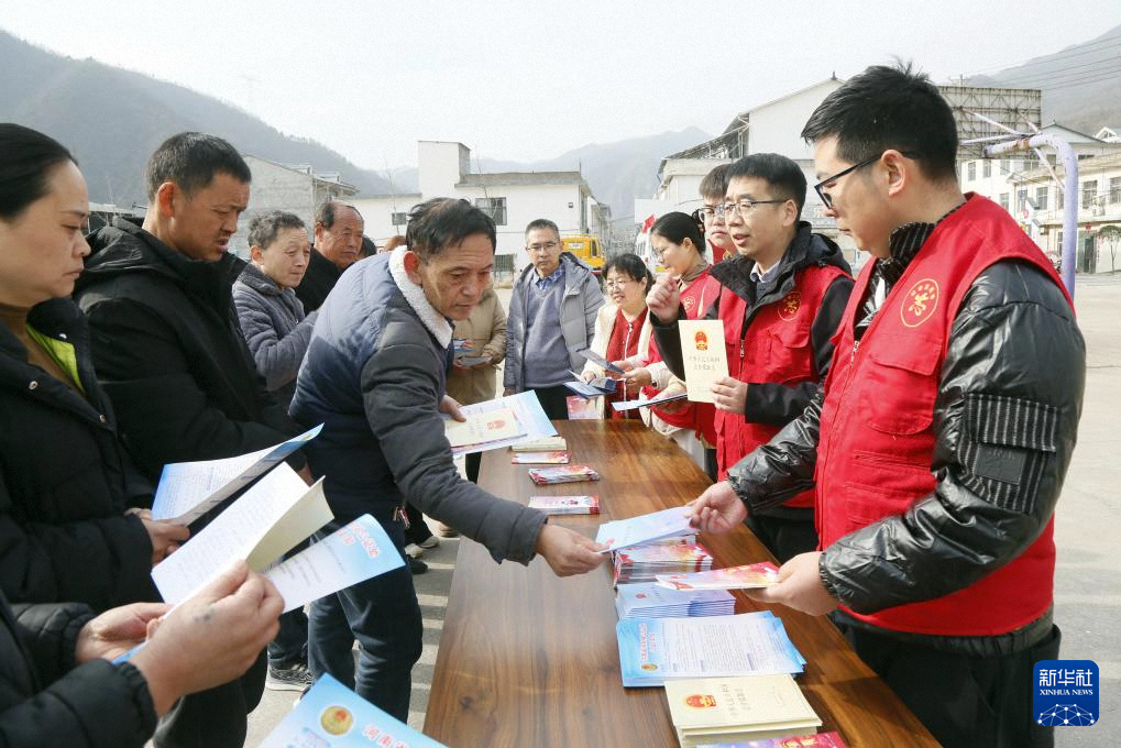 12月2日,在河南省洛陽(yáng)市汝陽(yáng)縣付店鎮(zhèn)馬廟村,縣法律援助中心、公正處、司法所志愿者給群眾講解憲法知識(shí)。新華社發(fā)(康紅軍 攝)