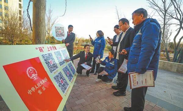 11月25日,河南省安陽縣人民法院組織干警深入轄區(qū)部分企業(yè)開展憲法宣傳活動。該院將憲法全文、序言、總綱、公民的基本權(quán)利和義務(wù)、國家機構(gòu)及國旗、國歌、國徽、首都等內(nèi)容按照章節(jié)分別制作成二維碼,讓企業(yè)職工用微信掃碼學(xué)習(xí)憲法知識,同時發(fā)放憲法宣傳資料,耐心答疑解惑。圖為該院干警在一企業(yè)內(nèi)引導(dǎo)職工用微信掃碼學(xué)習(xí)憲法。圖為普法現(xiàn)場。