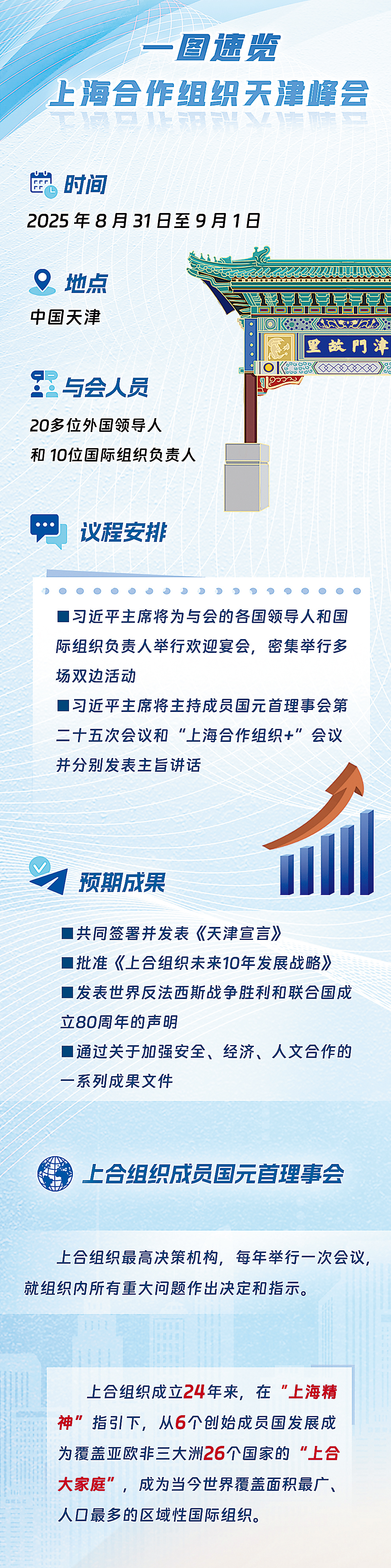 上海合作組織天津峰會(huì)于8月31日至9月1日舉行。20多個(gè)國(guó)家的領(lǐng)導(dǎo)人和10位國(guó)際組織負(fù)責(zé)人齊聚一堂,共商發(fā)展大計(jì)、共襄合作盛舉。