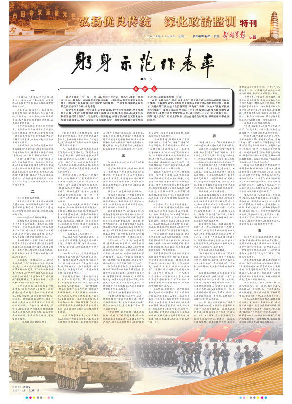 為官避事平生恥,視死如歸社稷心。軍隊(duì)領(lǐng)導(dǎo)干部是部隊(duì)建設(shè)的“關(guān)鍵少數(shù)”和中堅(jiān)力量,身上千鈞重?fù)?dān),身后千軍萬(wàn)馬,肩負(fù)著不斷開(kāi)創(chuàng)強(qiáng)軍事業(yè)新局面的使命責(zé)任,必須在實(shí)干擔(dān)當(dāng)上躬身踐行、奮勇?tīng)?zhēng)先,發(fā)揮關(guān)鍵引領(lǐng)作用。