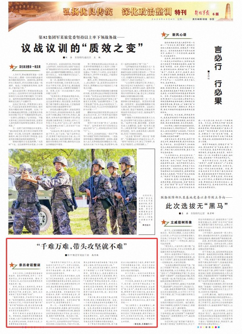 “看到領(lǐng)導(dǎo)干部在干什么,我們就知道自己該干什么!”一名軍士對我說,很多工作,其實(shí)不需要太多動員,只要領(lǐng)導(dǎo)干部站在第一排、帶著一起干,大家自然會跟著往前沖。